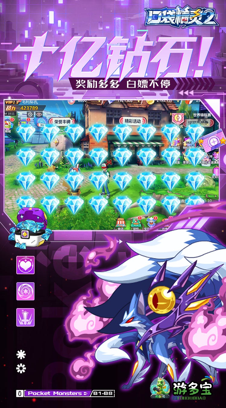 《口袋精灵2(送满星SP刷充)》是一款以口袋妖怪为主题,集宠物收集养成、策略对战、角色冒险为一体的手游,游戏采用了开放世界设计,玩家可以在游戏中自由探索、捕捉神兽精灵、进行战斗和完成任务,特色贸易功能,神兽、学习机、携带物自由交易!八大道馆,四大天王等你来战!