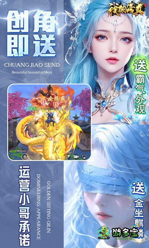 【创角即送】霸气外观:金坐麒麟、千年神鲲、灵光神鹿、炼狱噬魂衣、五条悟,1000元充值卷、进阶丹随机礼包*2000