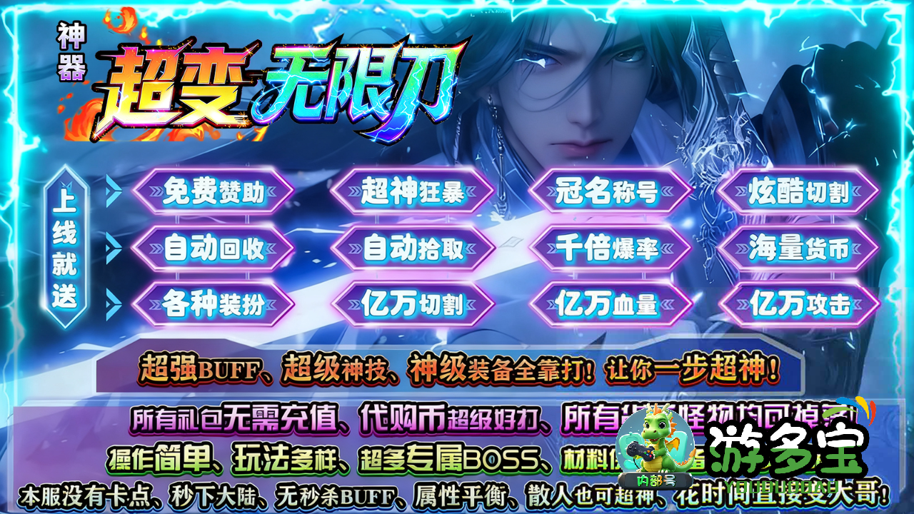 2025最新上线的超变传奇手游,996盒子三榜第一的(帝焰超超变爆爆)的升级版,福利更多,玩法丰富,0氪散人体验更加丝滑,更好扛华子。上线送一切!送送送,真正的超变爽服,送赞助送自动回收自动拾取送狂暴冠名称号等等。操作简单,玩法多样,所有货币怪物均可掉落,代购币也可打!