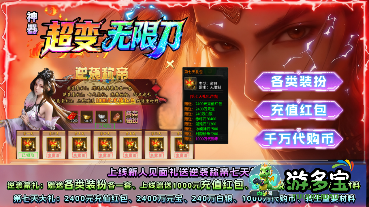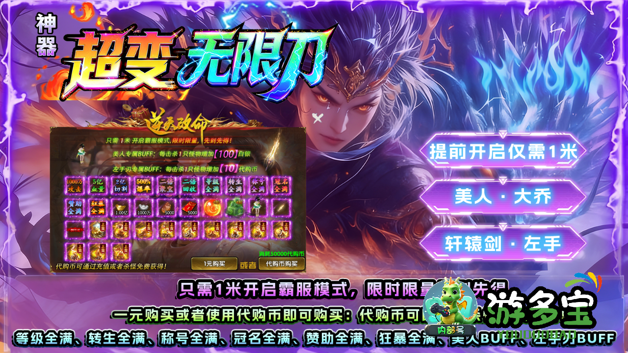 上线免费送50000代购币,!赞助、狂暴、冠名、干倍爆率、海量货币